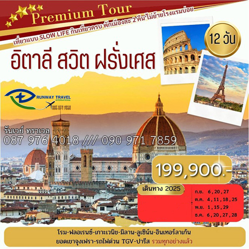 ทัวร์ 5 ดาว อิตาลี-สวิตเซอร์แลนด์-ฝรั่งเศส 12 วัน